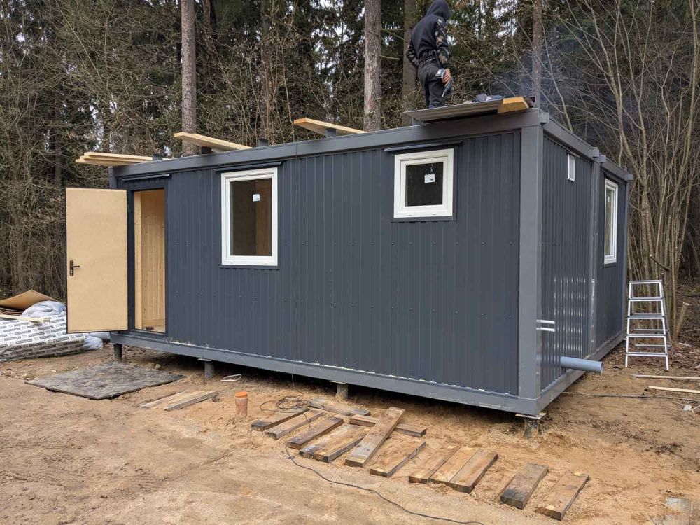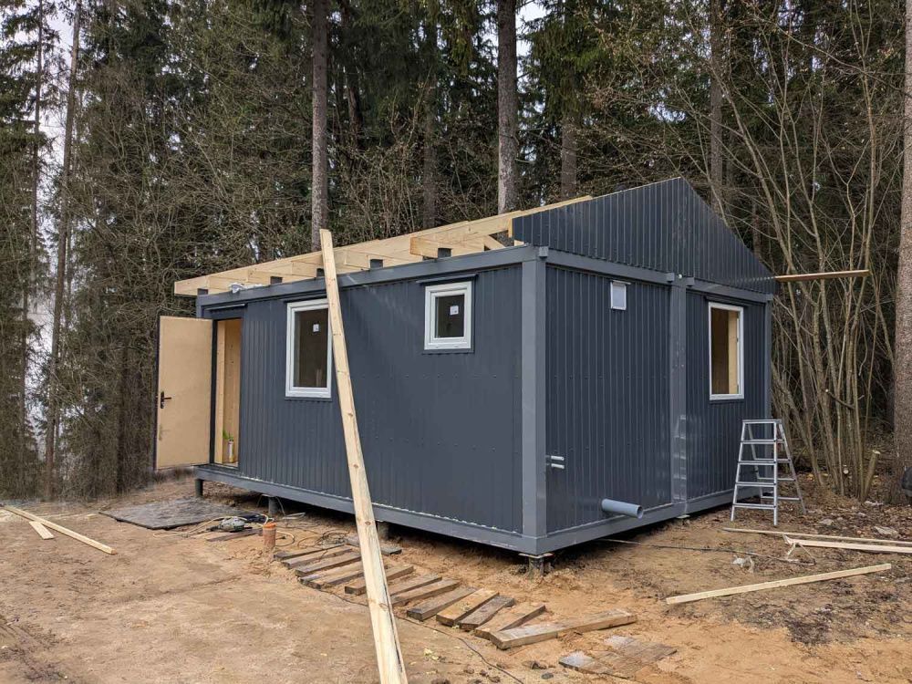 • Крыша блок контейнера Двухскатная кровля. Деревянные фермы, оцинкованный профлист